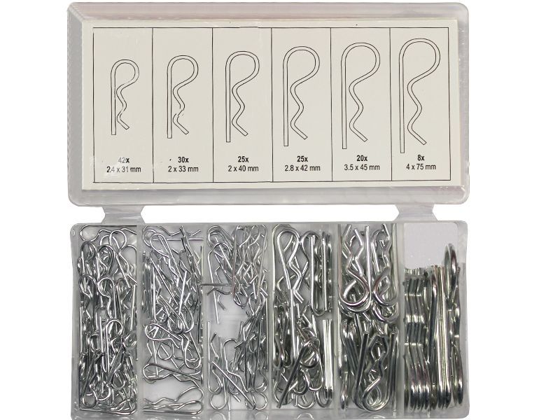 Шплинты упругие волнистые разных размеров YATO, набор 150 шт.