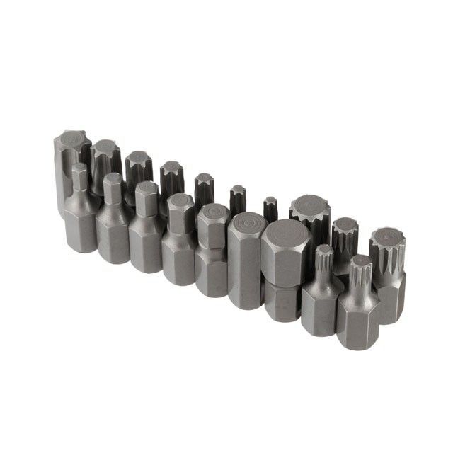 Набор состоит из 40 предметов. Разнообразие бит и шестигранников (TORX, HEX, Spline) в двух размерах 30 и 75 мм позволяют эффективно работать в труднодоступных местах и гарантируют надежное сцепление со шлицом крепежа.