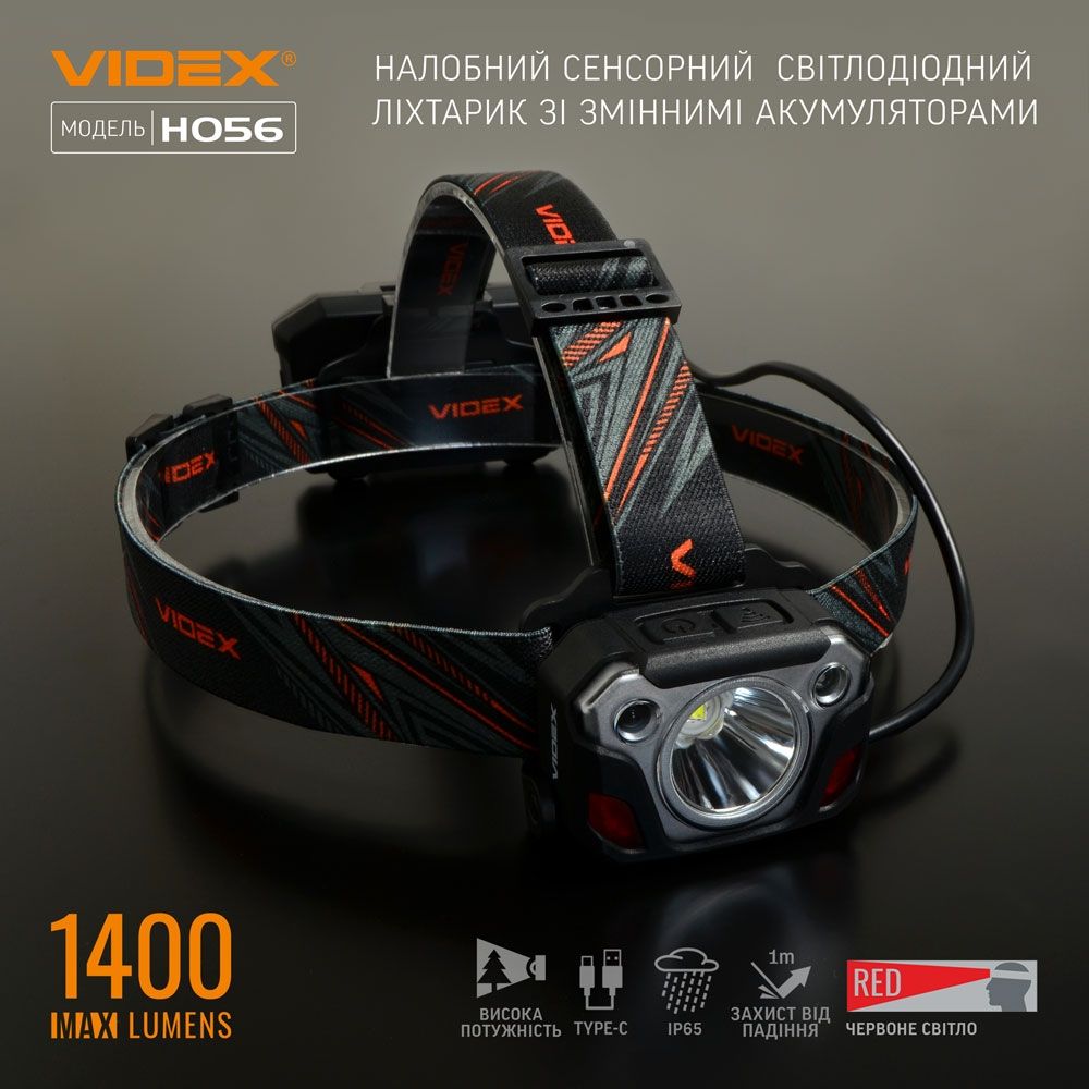 Налобный фонарь Videx 1400Lm 6500K до 155 м, с датчиком движения и Power Bank (VLF-H056)