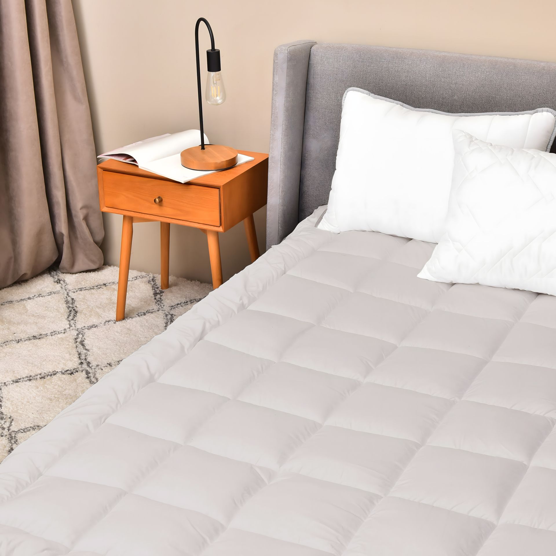 - Элегантный вид: красота в деталях! Наш наматрасник стильного серого цвета придаст кровати особую элегантность.