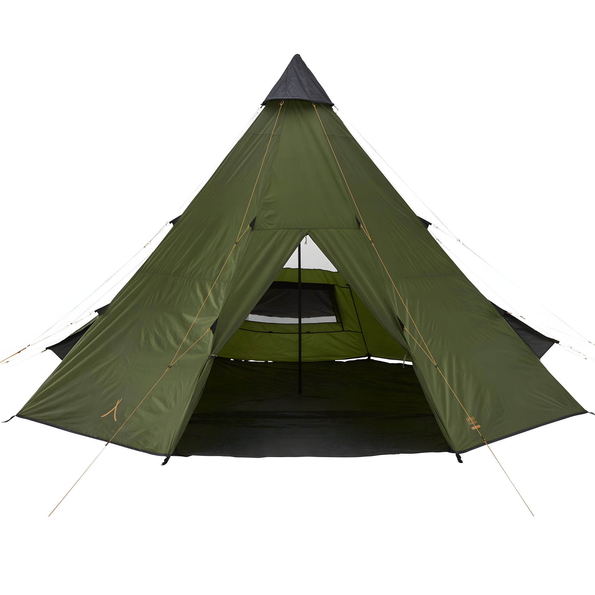 Палатка имеет съемный пол, поэтому может использоваться с полом, и без него в качестве летнего накрытия. С трех сторон палатка имеет окна со шторками и большие вентиляционные клапаны, благодаря чему в палатке достаточно света и отличная вентиляция. Полиуретановая пропитка наружного слоя и проклеенные швы обеспечивают водостойкость 4000 мм водяного столба, что позволяет не бояться проникновения влаги даже во время затяжных осадков. Оливковый цвет обеспечивает отличные маскировочные свойства. Grand Canyon Black Falls 8 является самой большой среди восьмиместных палаток шатровой конструкции, при этом имеет достаточно небольшой вес 9 кг, что делает ее очень удобной для кемпинга и фестивалей.