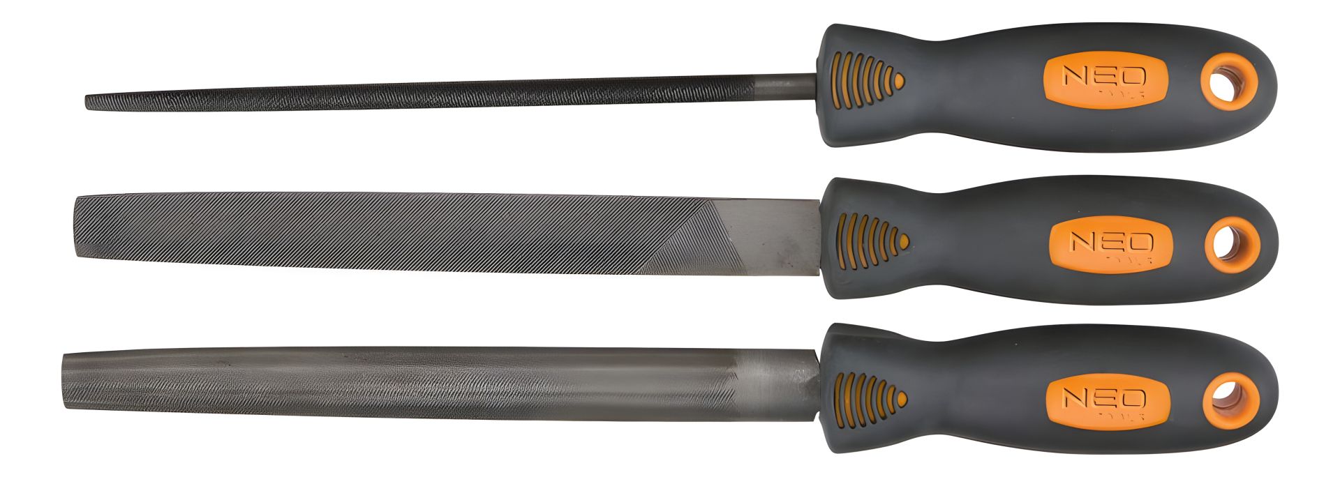 Набор напильников по металлу, 3 шт., двухкомпонентная рукоятка, сталь T12, зернистость 2, NEO (37-605)