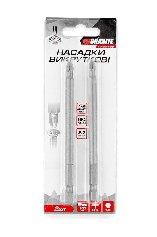 Насадка отверточная PH2 100 мм ¼" S2, набор 2 шт. — удлиненные биты профессионального качества, предназначенные для работы с креплениями типа PH2.