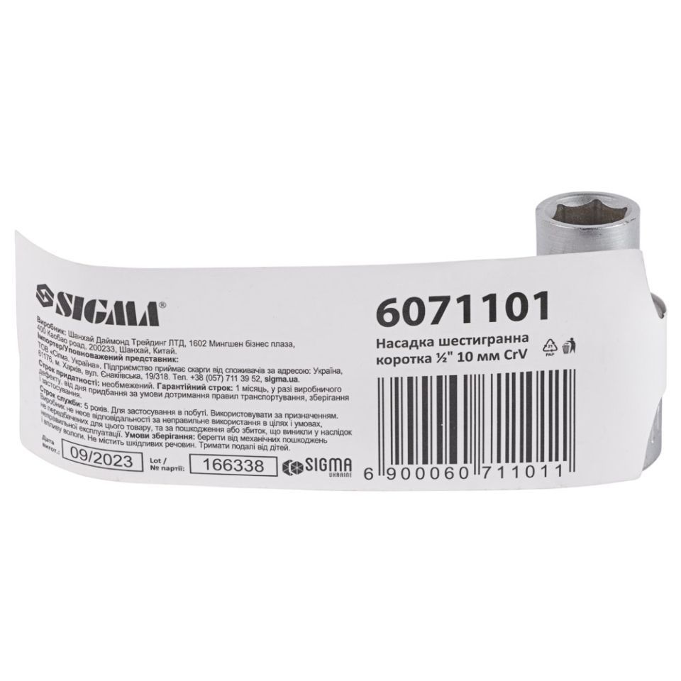 Насадка шестигранная короткая 1/2" 10мм CrV mid SIGMA (6071101)