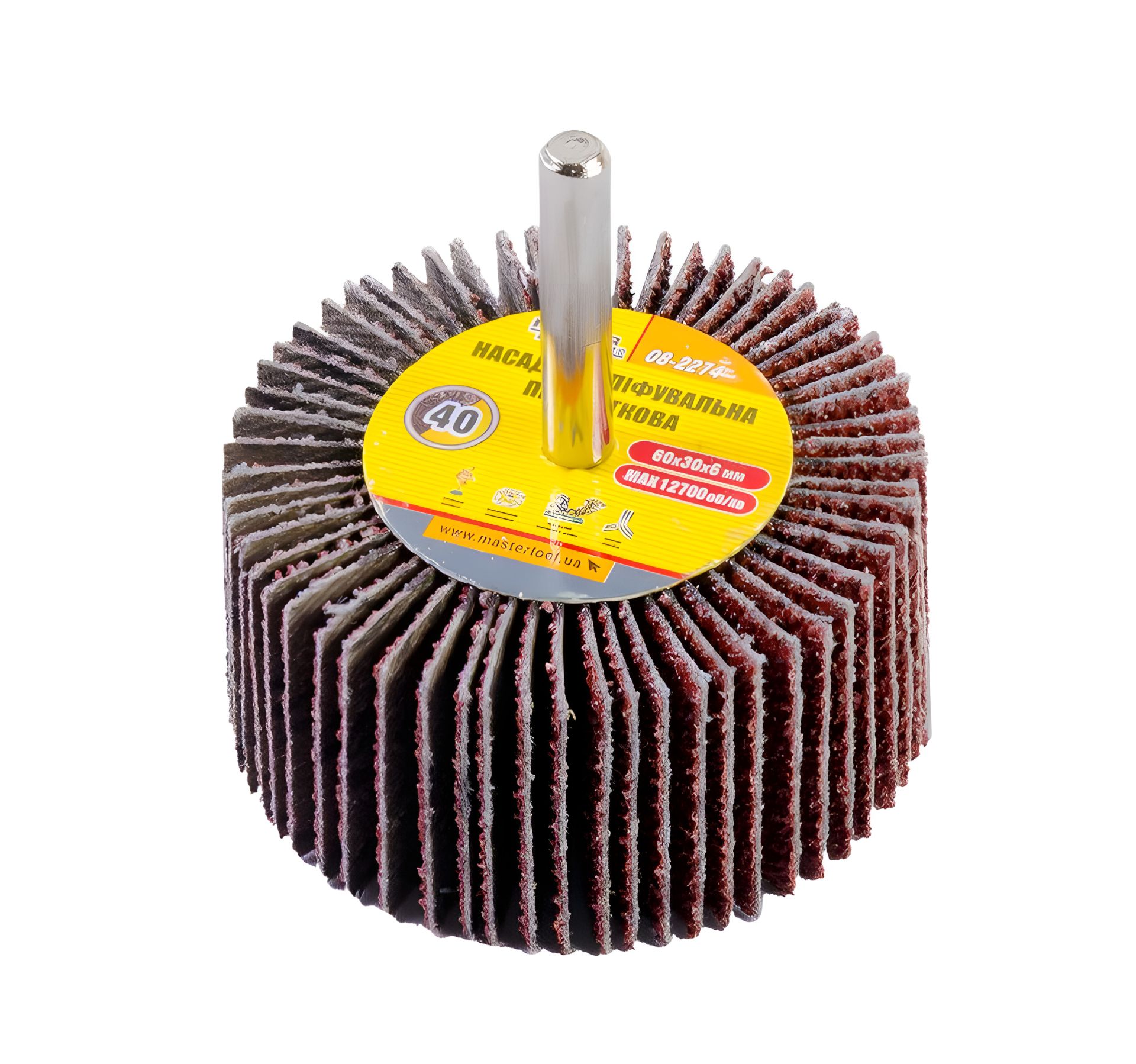 Шлифовальная лепестковая насадка зерно 40 80х40 мм со стержнем 6 мм MASTERTOOL 08-2294. Подробнее...