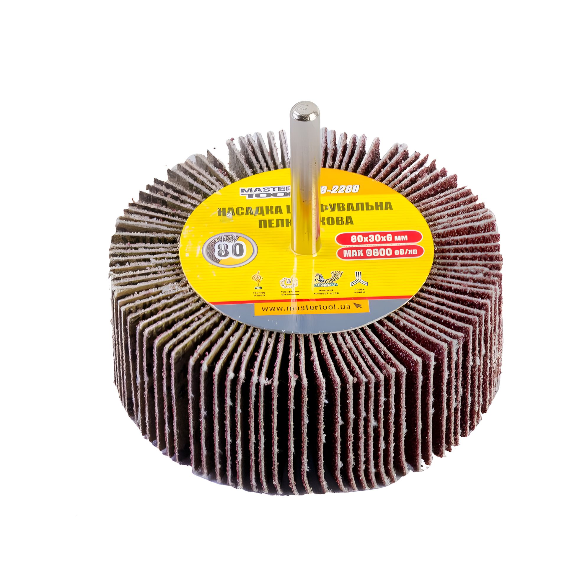 Лепестковая шлифовальная насадка зерно 80, 80х30 мм со стержнем 6 мм MASTERTOOL 08-2288