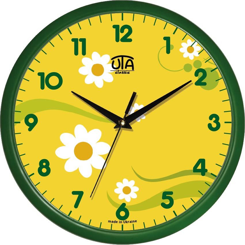 Настенные часы (30 cм) "Ромашки" UTA-01-GR-08 салатовые