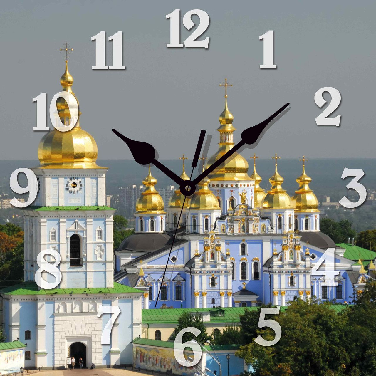 Настенные часы ЮТА “Панорама” 300Х300Х16мм UA – 013 “КИЕВ” – имеют квадратную форму.