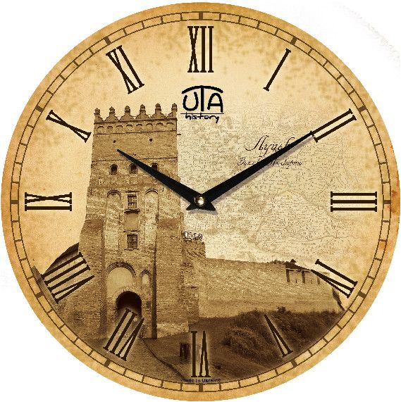 Настенные часы ЮТА “History” (33 cм) 01 Hlu “ЛУЦК” – имеют круглую форму, диаметр 33 см.