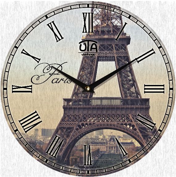 Настенные часы ЮТА “Vintage” (33 cм) 004 VT “Париж” – имеют круглую форму, диаметр 33 см, толщину 2,7 см, вес 0,6 кг.