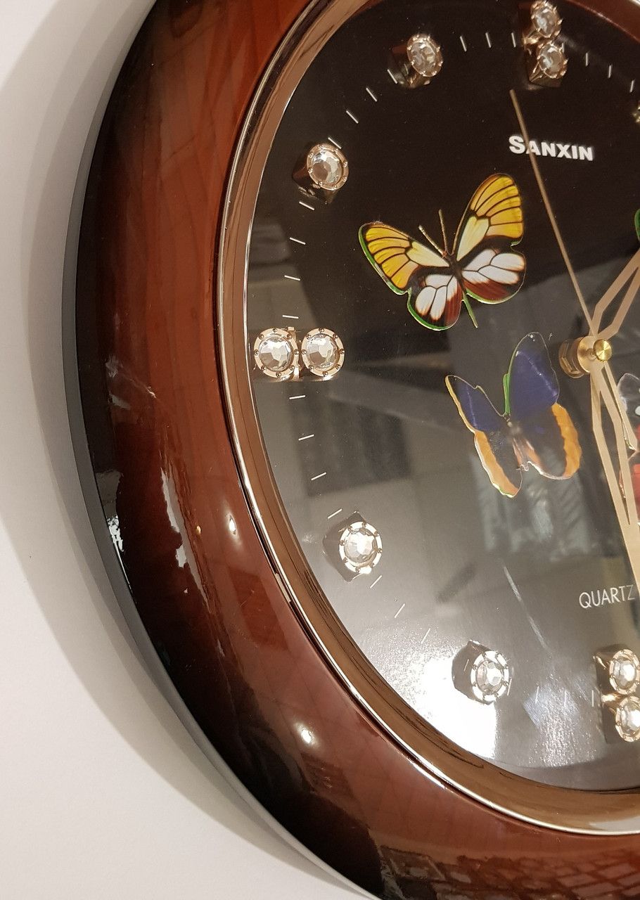 Очень красивые настенные часы. Циферблат украшен стразами, золотом, порхающими бабочками.