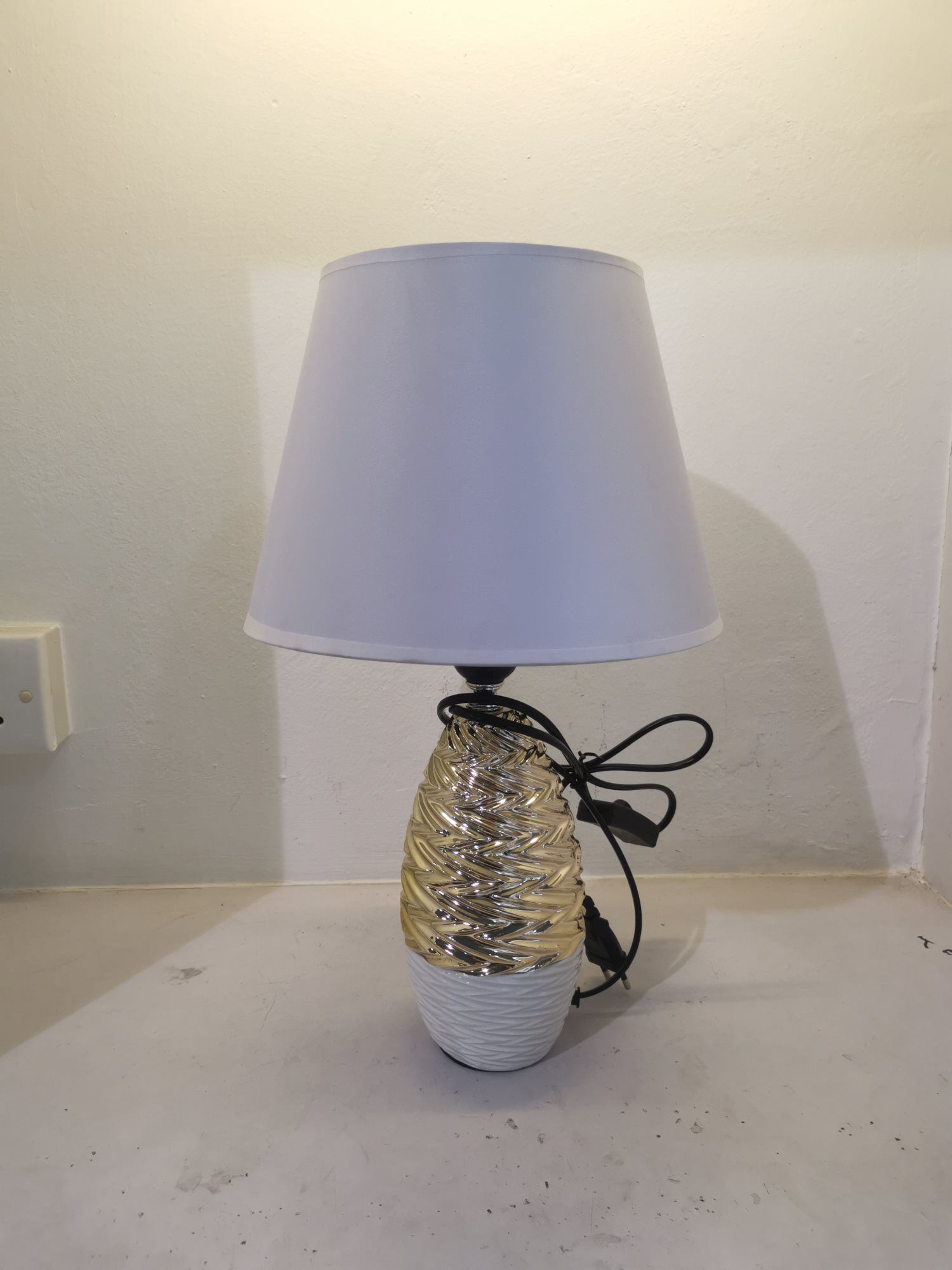 Основа лампы выполнена из качественной керамики в золотом цвете с изящным текстурным покрытием, что придает ей эстетическую выразительность и делает привлекательным элементом декора. Она обеспечивает надежность и стойкость конструкции, гармонично дополняя общий вид изделия.