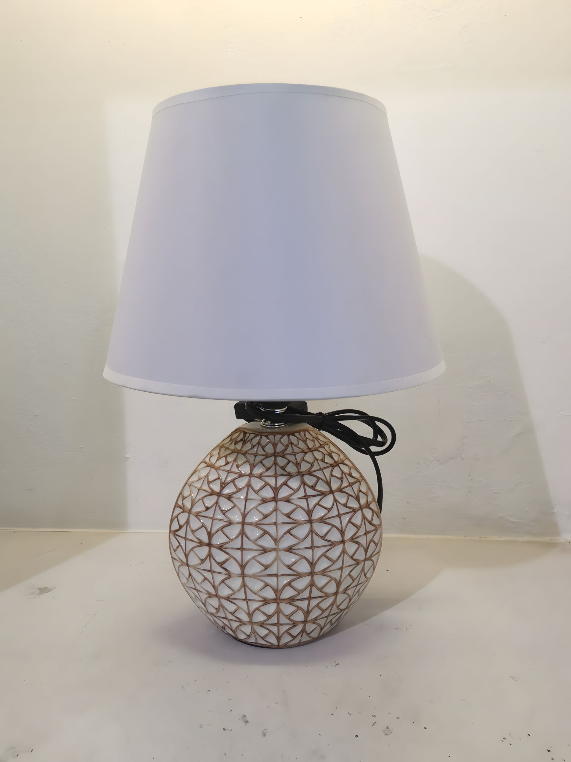 Основа лампы выполнена из качественной керамики с изящным текстурным покрытием, что придает ей эстетическую выразительность и делает привлекательным элементом декора. Она обеспечивает надежность и стойкость конструкции, гармонично дополняя общий вид изделия.