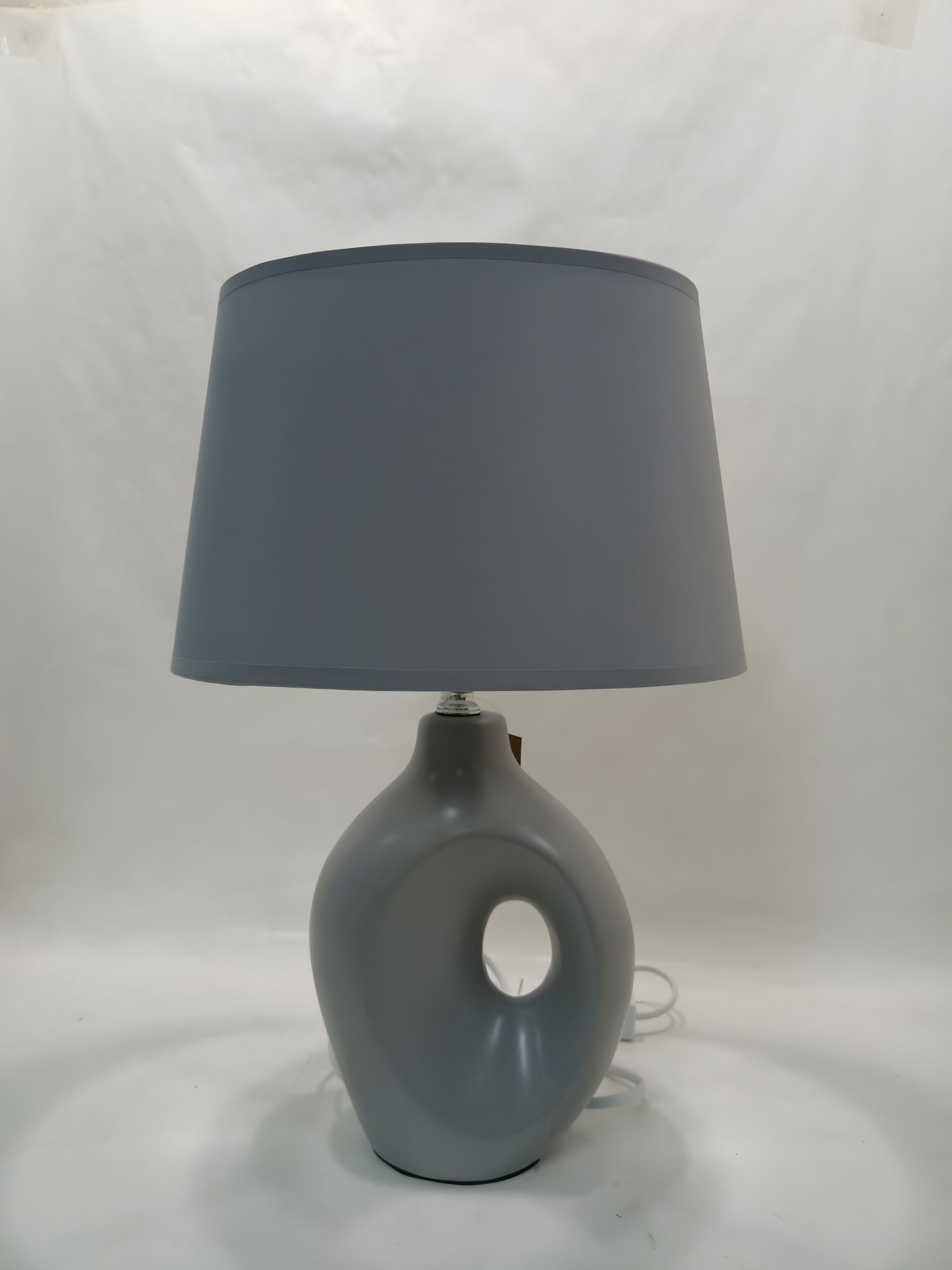 Материал: керамический каркас серого цвета и серый текстильный абажур.