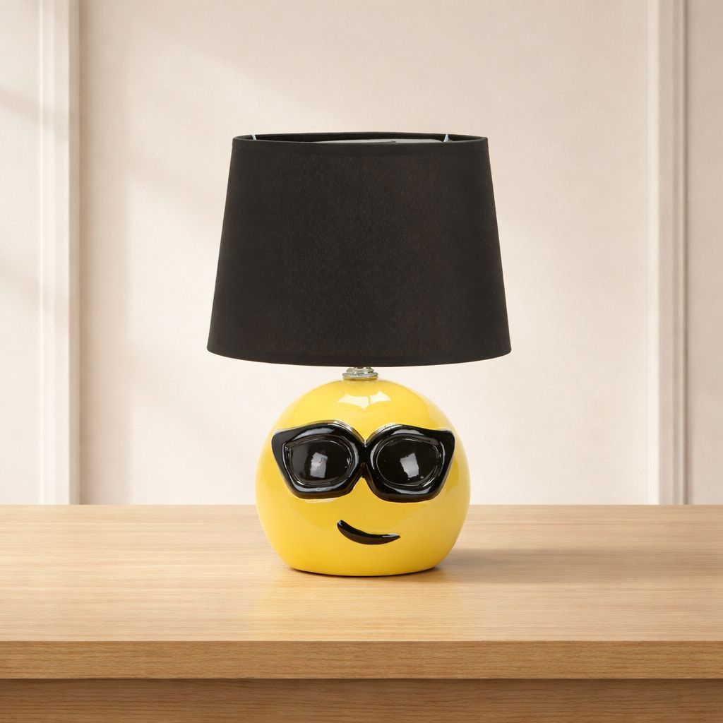 Эта волшебная лампа не только принесет свет, но и принесет улыбку вашему лицу! С ее ярким желтым керамическим каркасом в виде смайлика и черным текстильным абажуром она станет отличным акцентом в вашем интерьере.