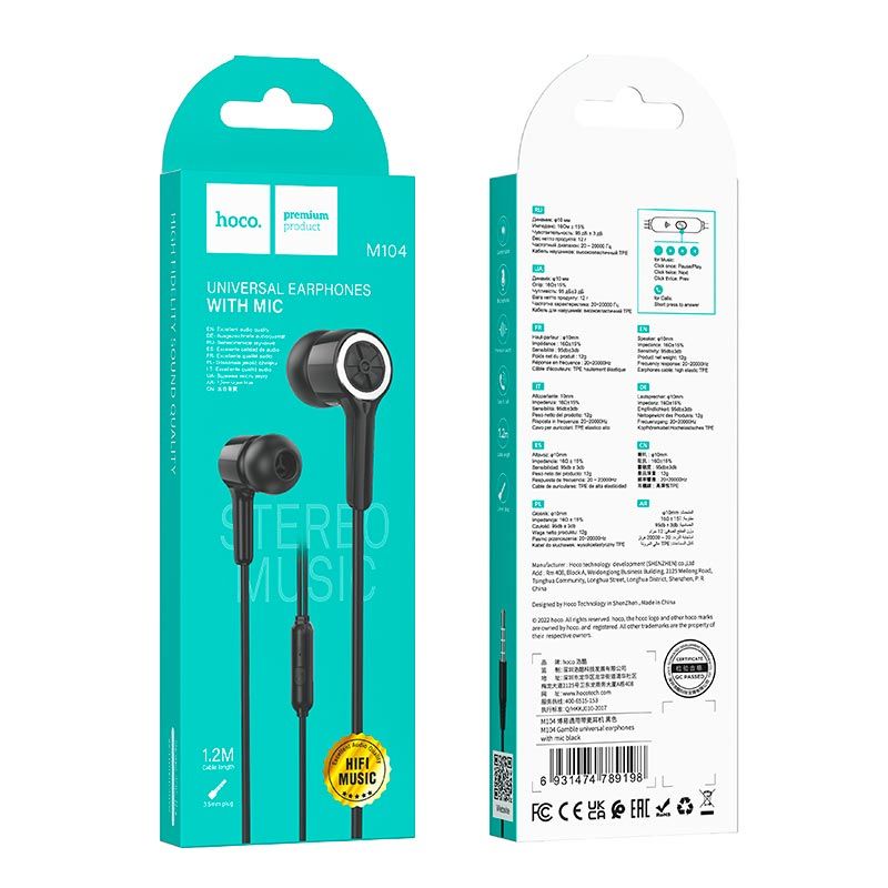 Hoco M104 — это стильные проводные вакуумные наушники с микрофоном и разъёмом 3.5 мм. Они обеспечивают чистый звук с насыщенными басами, удобны при длительном использовании и совместимы с большинством устройств на Android и iOS.