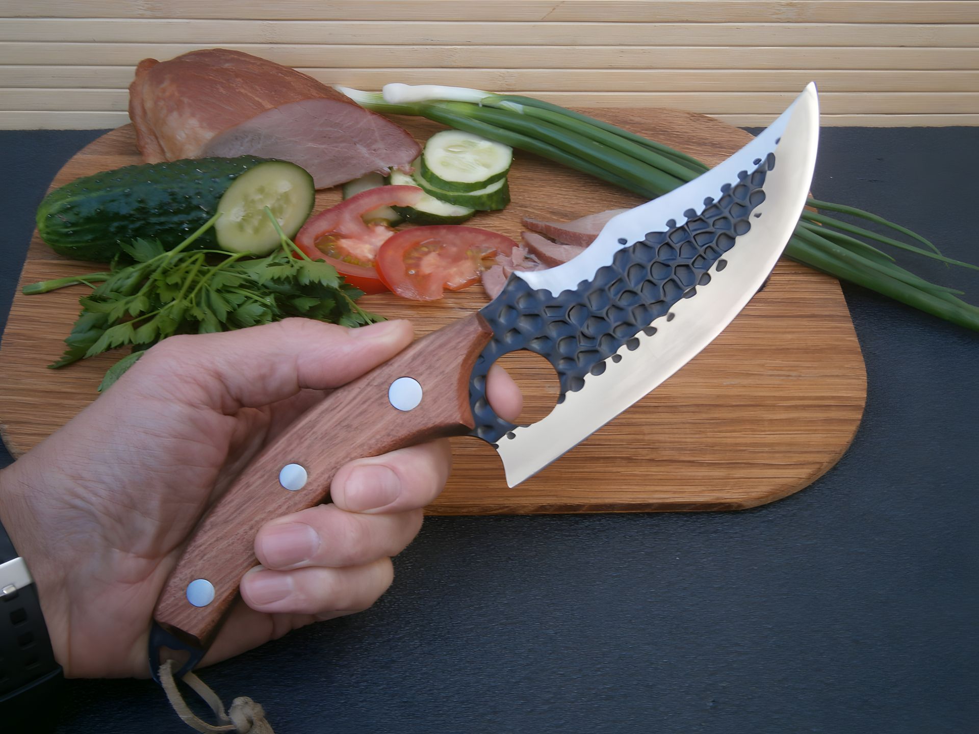 Уникальной особенностью ножа является его способность одинаково эффективно резать мясо, шинковать зелень, резать овощи, разделывать рыбу и т. д.