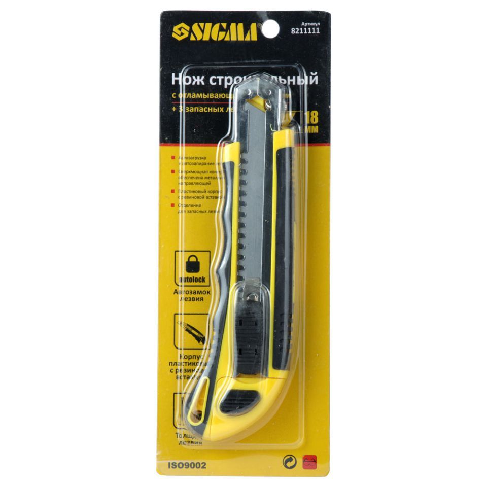 Нож пластик/резина корпус лезвие 3шт 18мм автоматический замок SIGMA 8211111