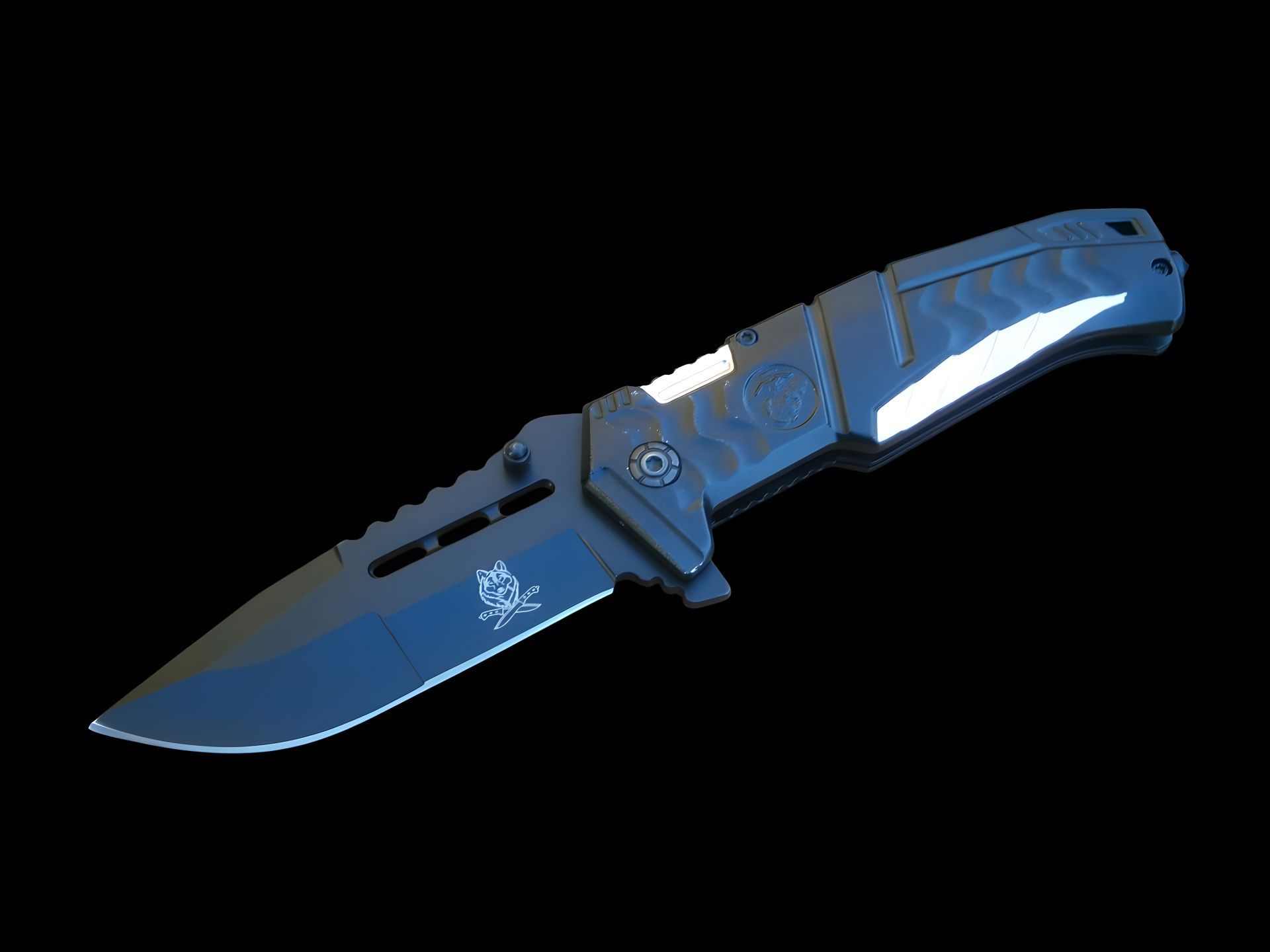 - Механизм замка основан на плоской пружине, которая лежит в хвостовике лезвия во время открытия ножа.