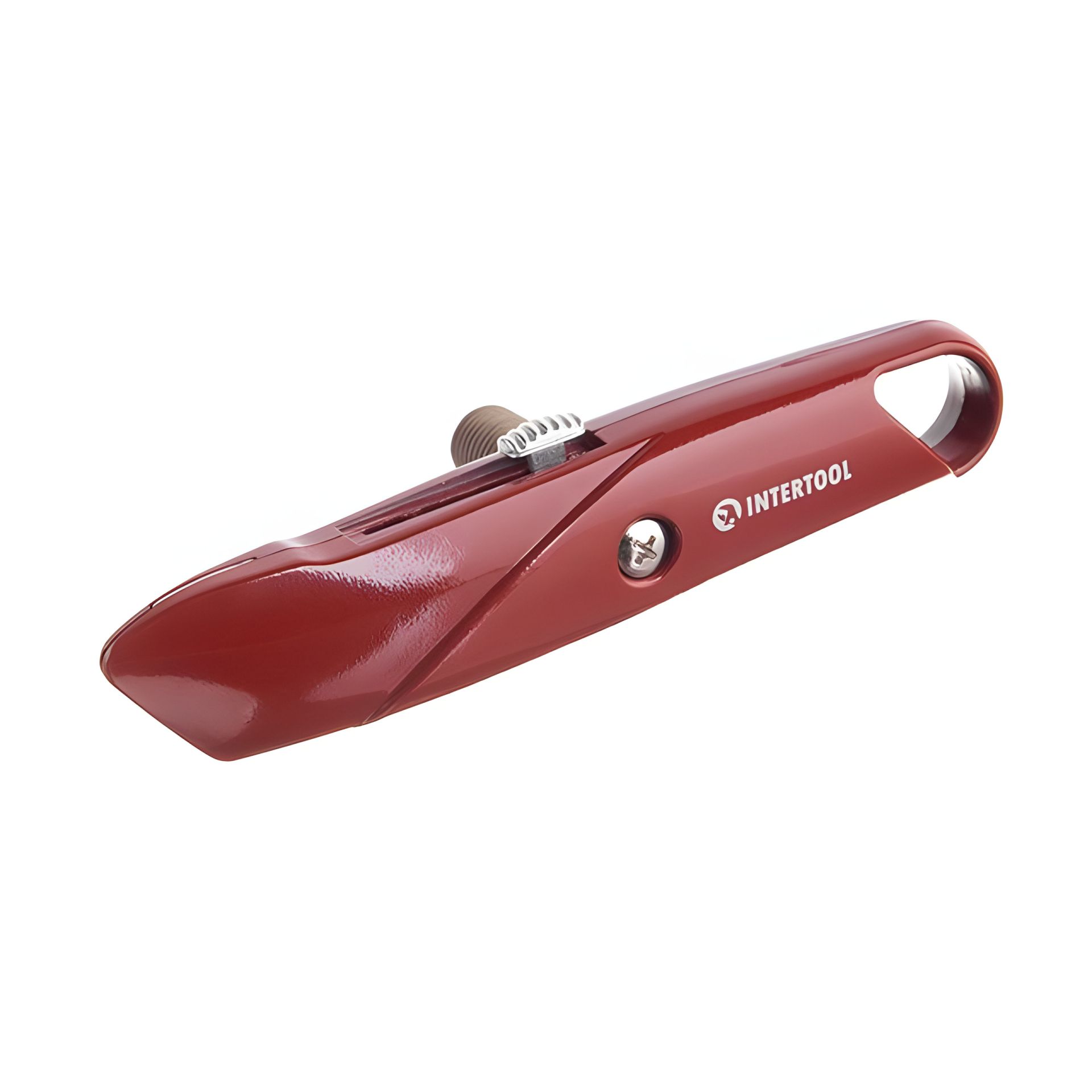 Трапециевидный нож, 60×19 мм, с выдвижным лезвием, металлический корпус INTERTOOL HT-0505