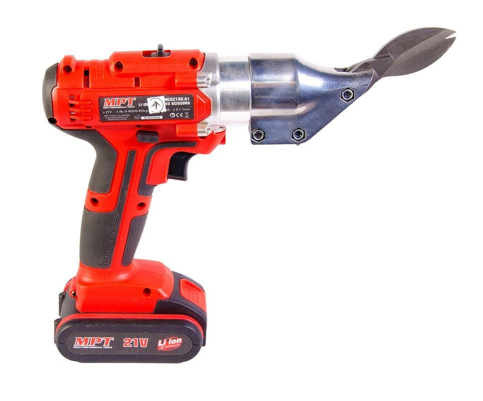 Аккумуляторные ножницы по металлу 21 В Li-ion 1.5 Ач, 2 скорости, 0.1-1 мм, с сумкой MASTERTOOL MCS2150.A1