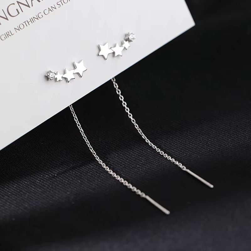 Серьги звездочки звезда длинные проволочные кисти нити цепочка протяжки 2 цвета