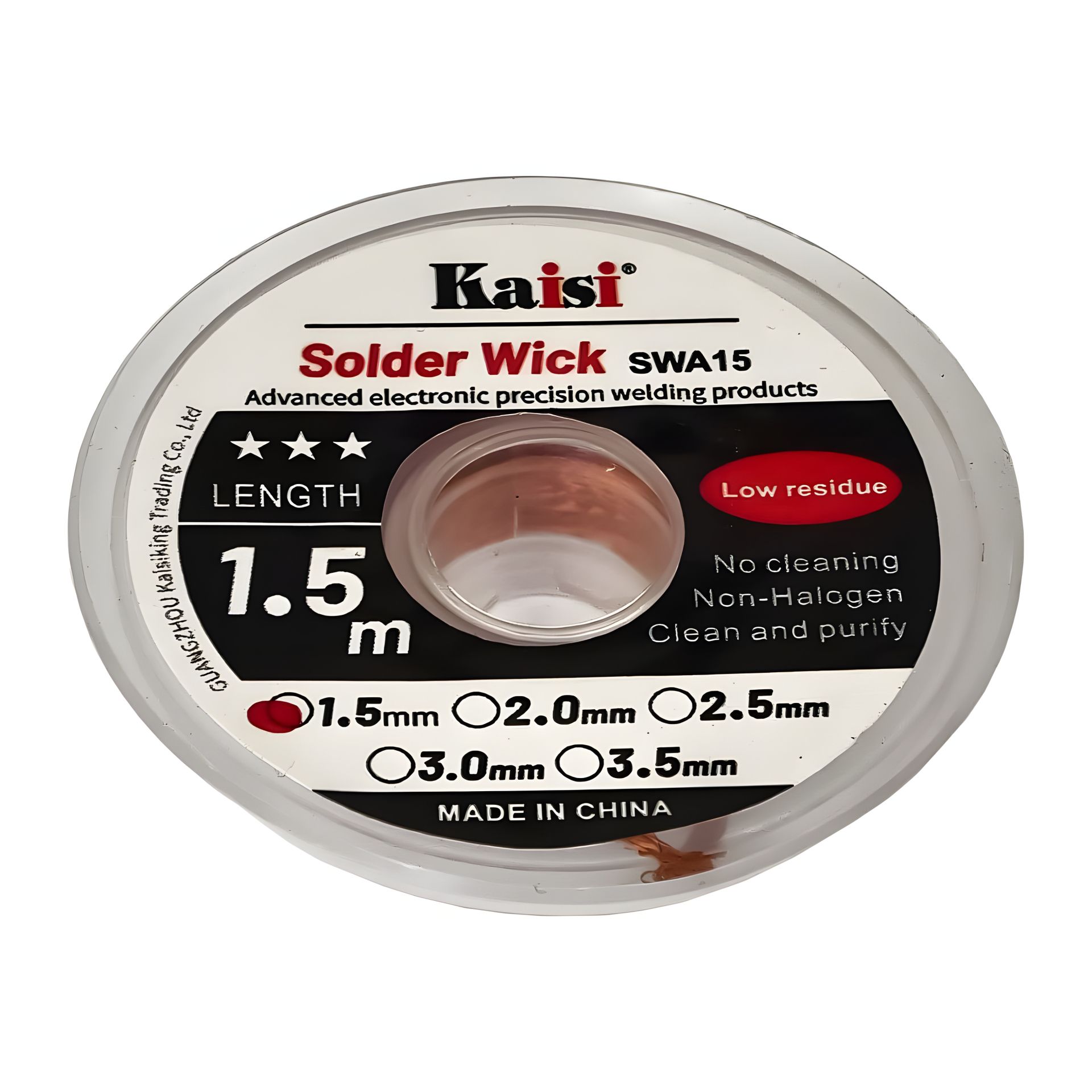 Очиститель припоя Kaisi 1515 предназначен для аккуратного и эффективного удаления припоя с печатных плат, микросхем и других чувствительных электронных компонентов. Благодаря компактной ширине 1.5 мм и длине 1.5 м, он легко проникает в труднодоступные места, обеспечивая высокую точность и минимизируя риск повреждения дорожек и элементов.