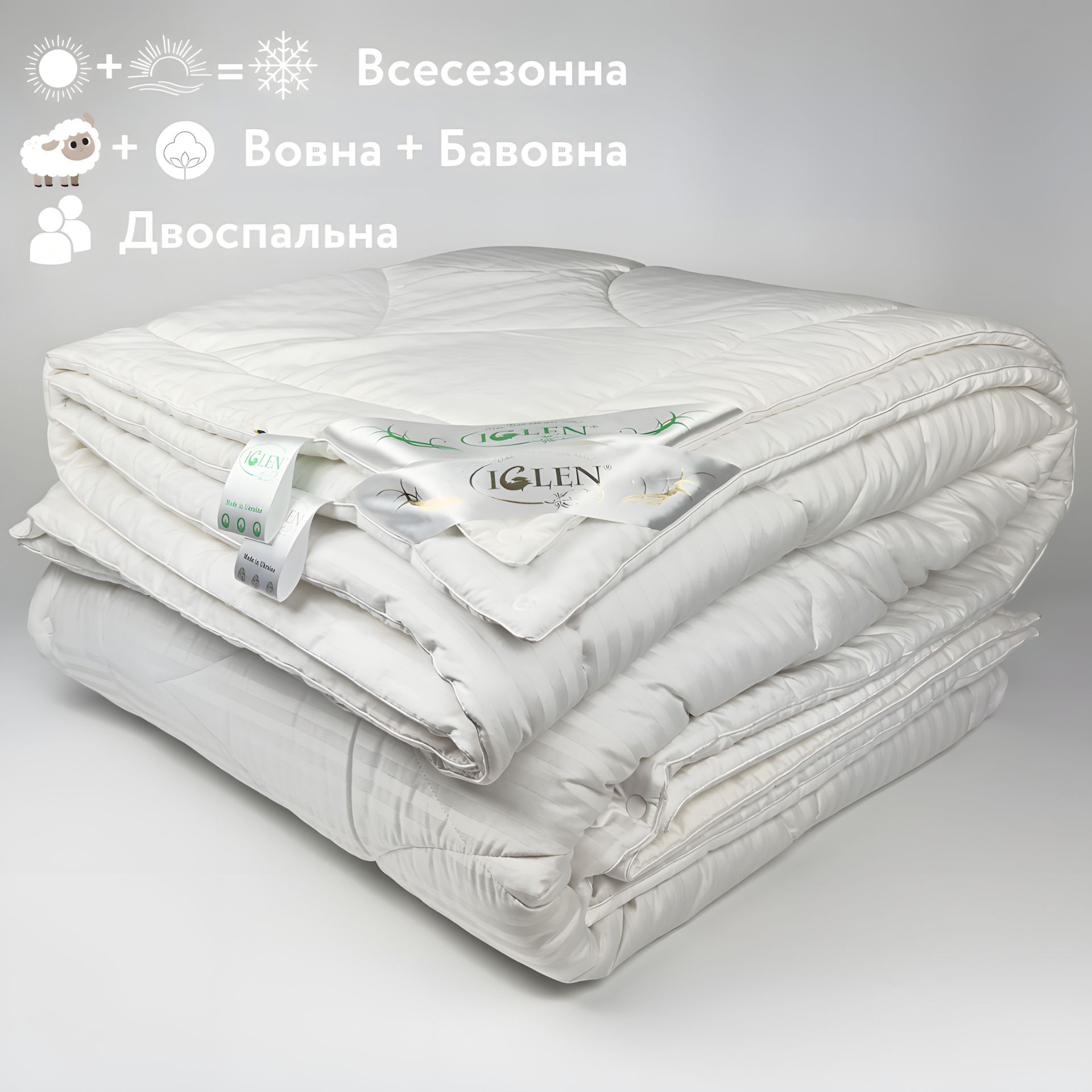 Объединенные вместе, эти одеяла образуют Дуэт, что обеспечивает вам тепло и комфорт в любую погоду. Отдайте предпочтение качеству и здоровью, выбирая лучшее от мастеров TM IGLEN. С этим одеялом каждая ночь станет комфортной и уютной.