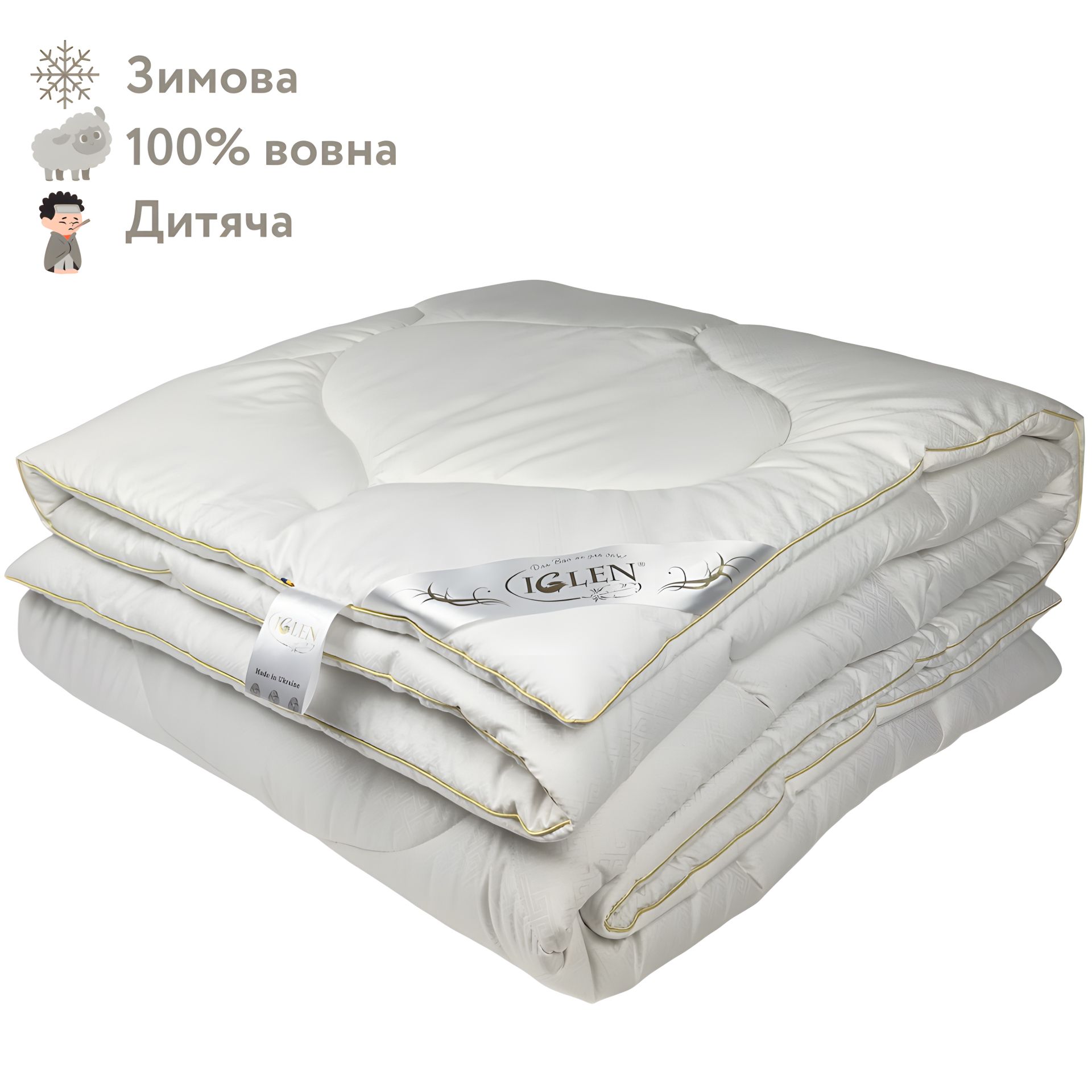 Одеяло зимнее детское из овечьей шерсти IGLEN 110х140 в жаккардовом дамаске (1101405)