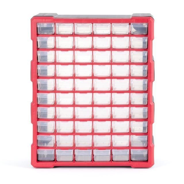 Прозрачные стенки позволяют увидеть, что хранится в лотках и упрощают процесс поиска. Удобные ручки помогают выдвигать лотки, а ограничители на верхних стенках ячеек не позволяют им выпадать.