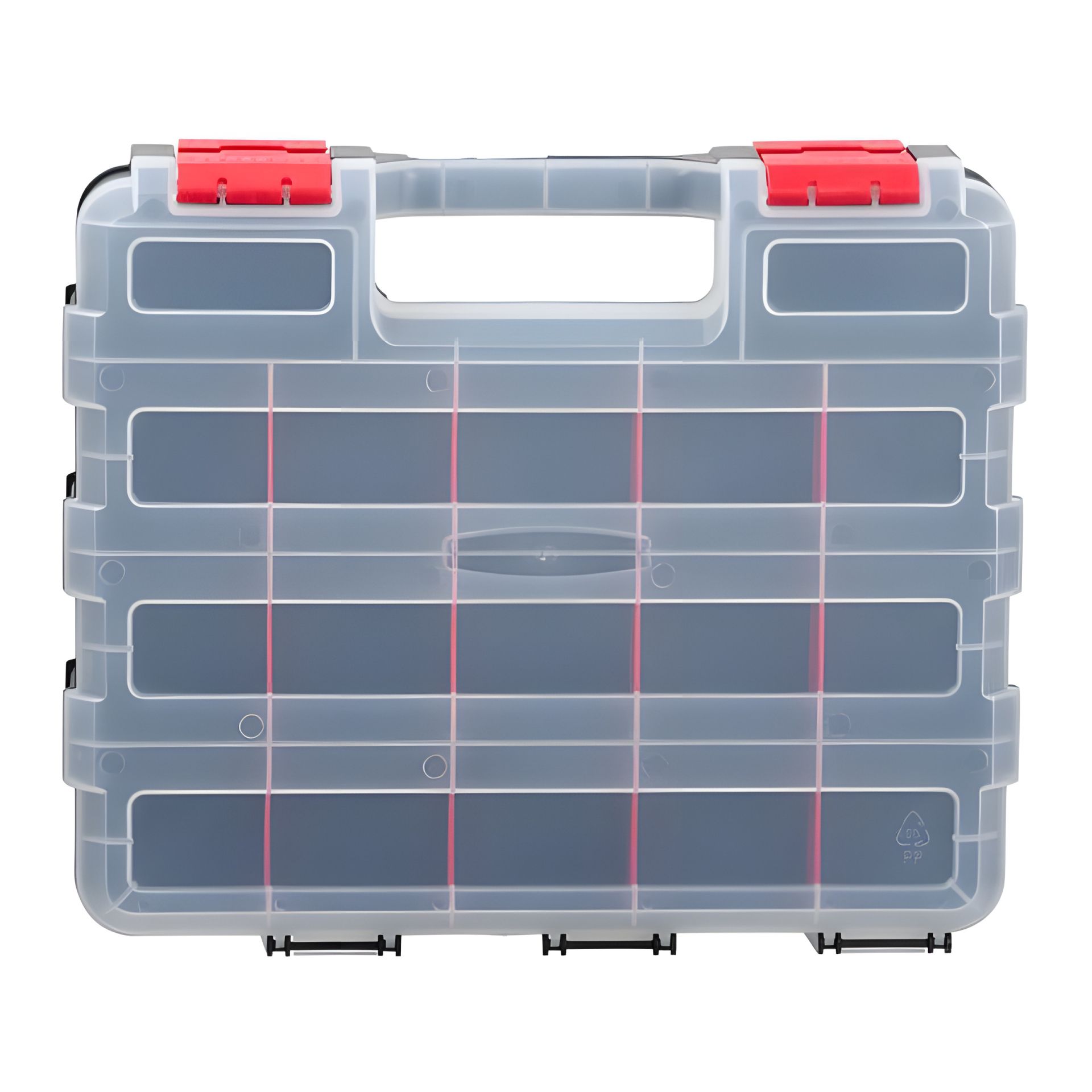 Прозрачность крышки помогает быстро находить необходимые предметы. Органайзер имеет удобную ручку для транспортировки.