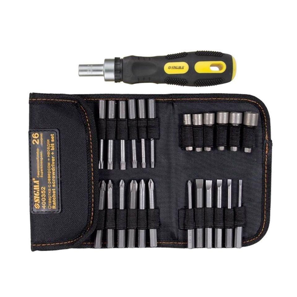 Отвертка + биты 18шт + насадки торцевые 6шт CrV SIGMA 4002111