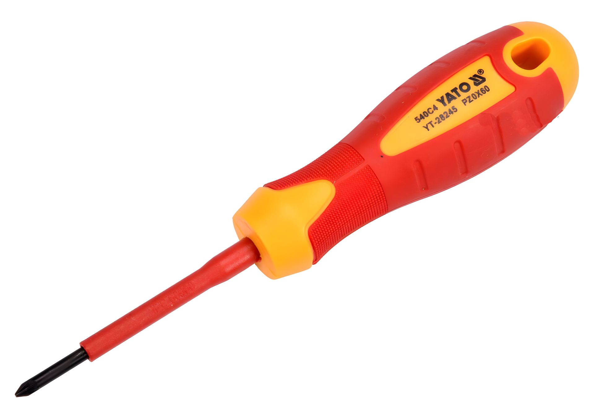 Крестовая диэлектрическая отвертка PZ0 x 60 мм VDE до 1000 В YaTo YT-28245
