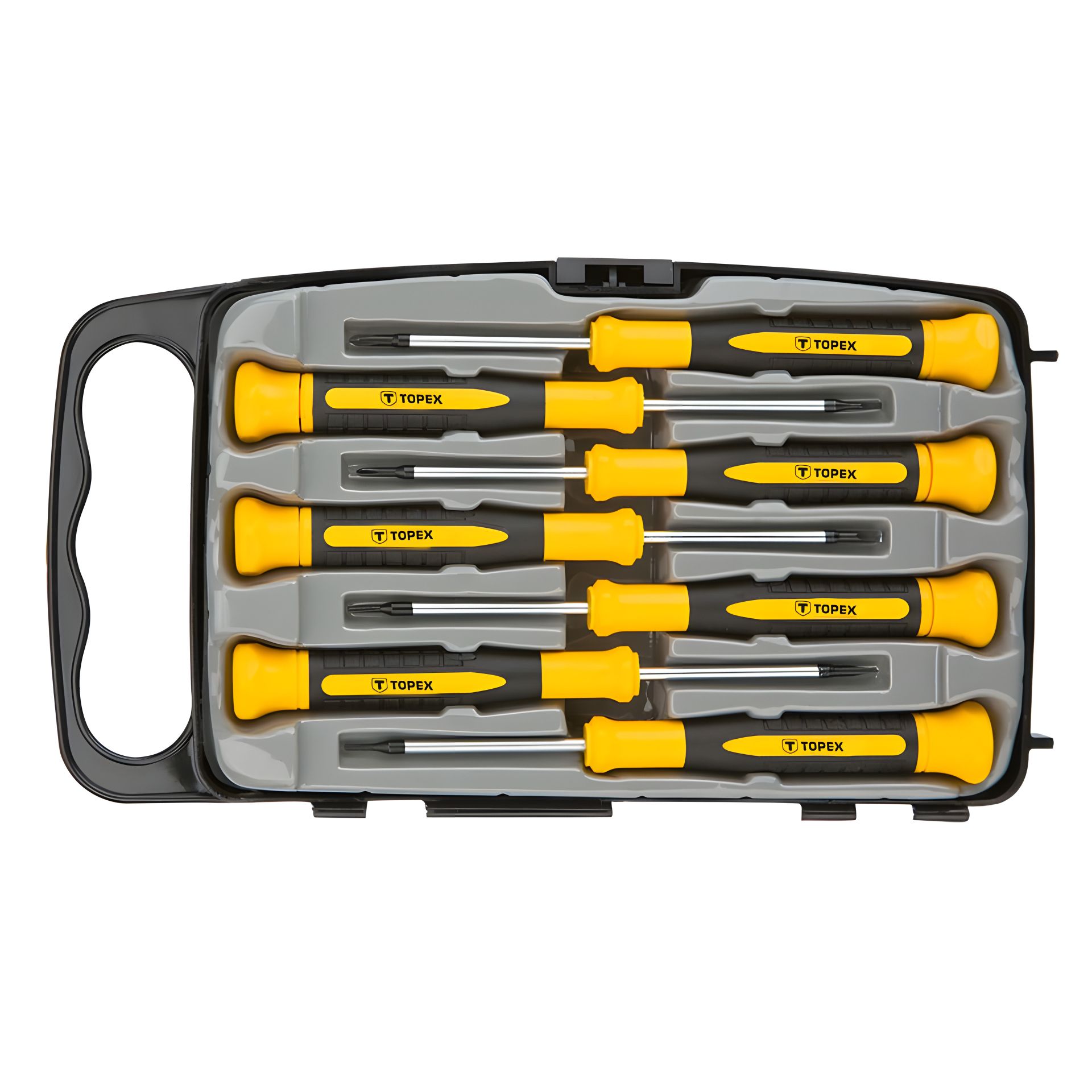 Набор прецизионных отверток, 7 шт., размеры: 1.5 x 50 мм, 2 x 50 мм, 2.5 x 50 мм, PH000 x 50 мм, PH0 x 50 мм, T5 x 50 мм, T6 x 50 мм, Topex 39d558