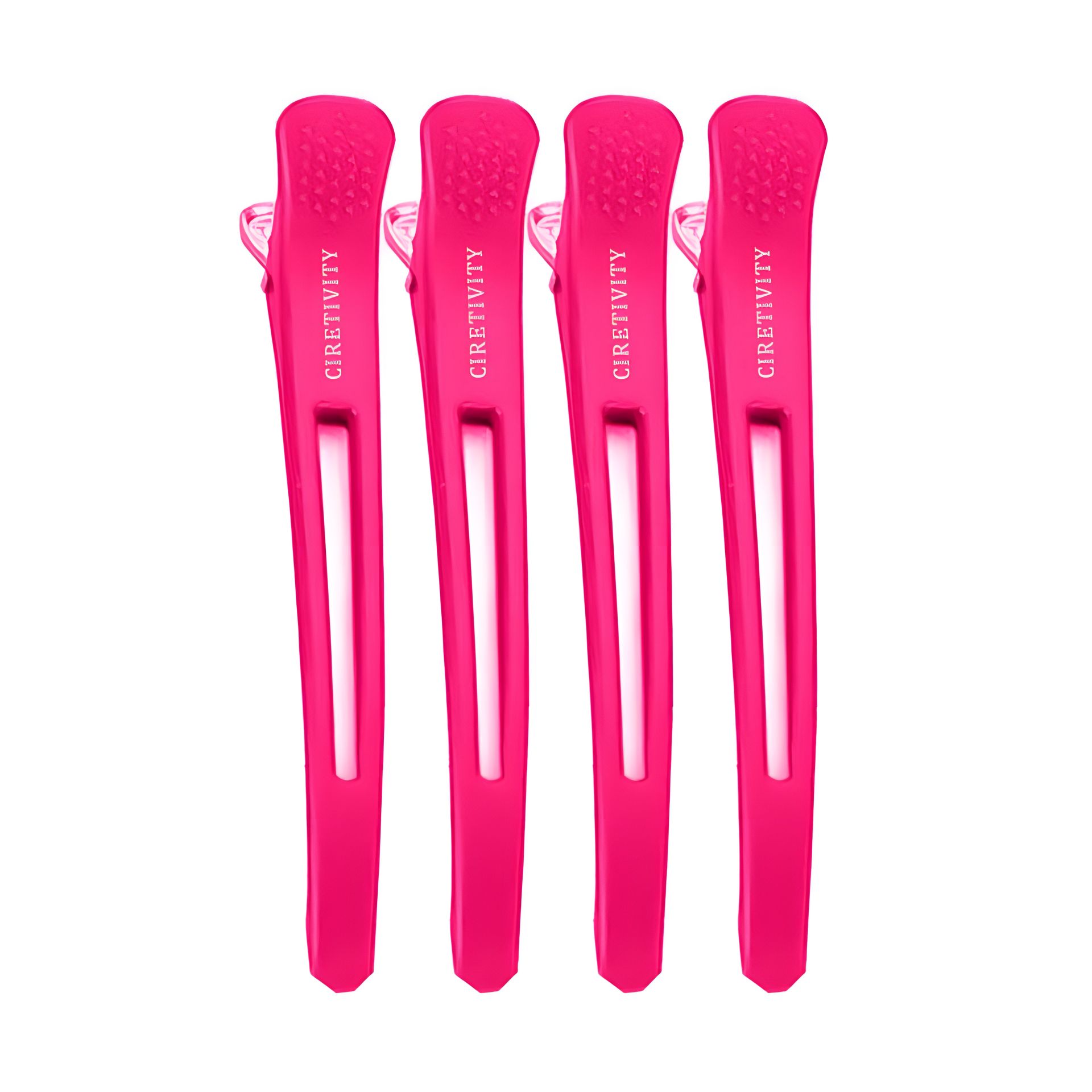 Парикмахерские клипсы-зажимы для волос "утка" плоские пластик/металл 11 см CIRETIVITY малиновые 4 предмета