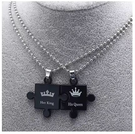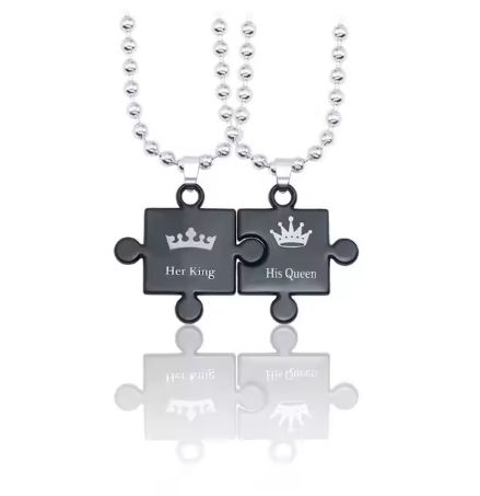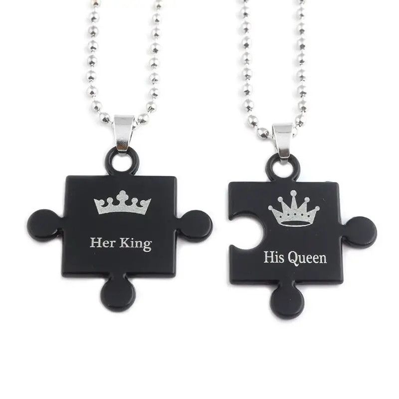 Парные подвески для влюбленных пазлы с надписью His Queen Her King черные кулоны в форме пазлов