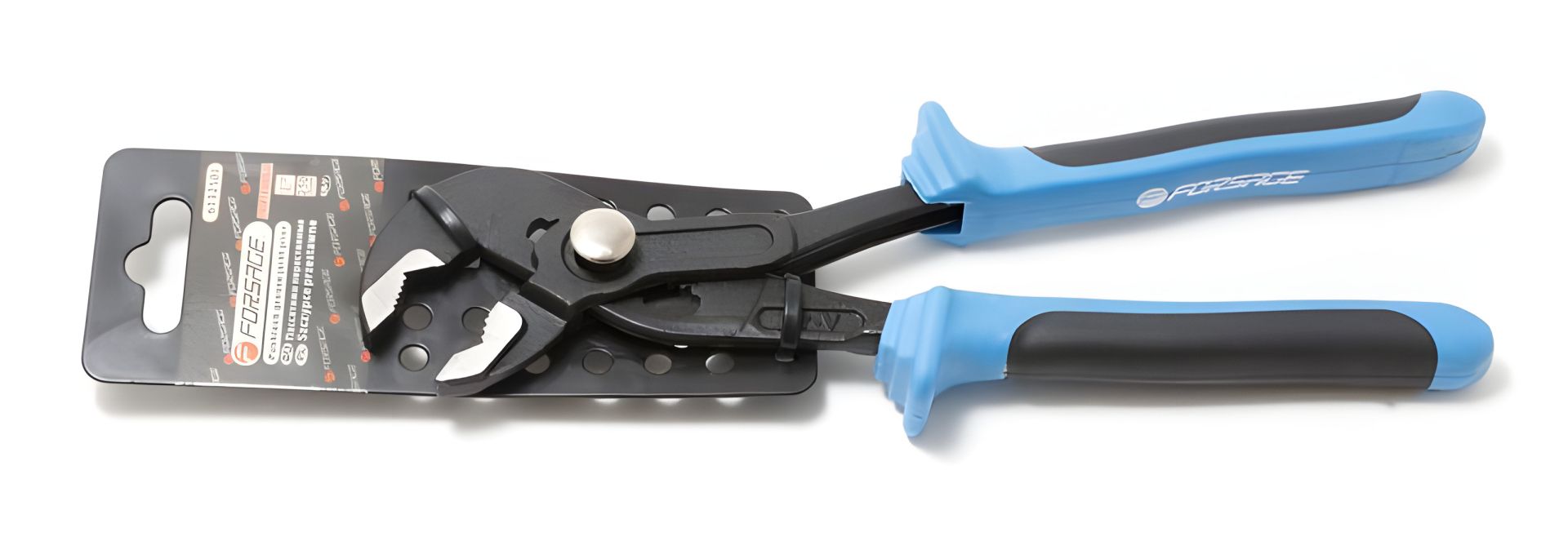 Пассатижи переставные сантехнические с мелким шагом, кнопкой фиксации и эргономичными ручками CR-V 10"-250мм, на пластиковом держателе FORSAGE F-613250J