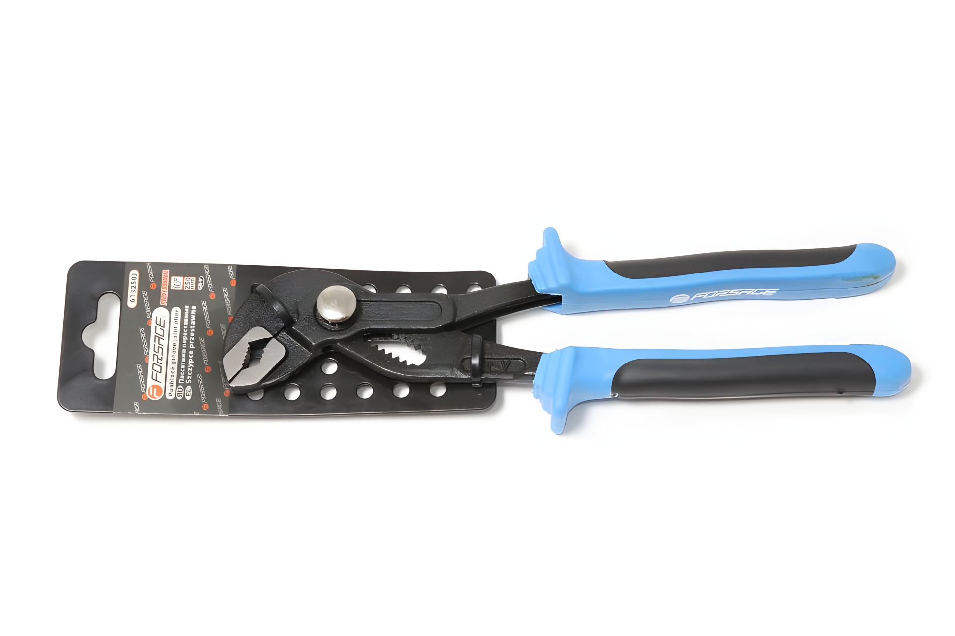 Код товара: 26535, Состав: Пассатижи переставные сантехнические с мелким шагом, кнопкой фиксации и эргономичными ручками CR-V 12"-300мм, на пластиковом держателе Forsage F-613300J