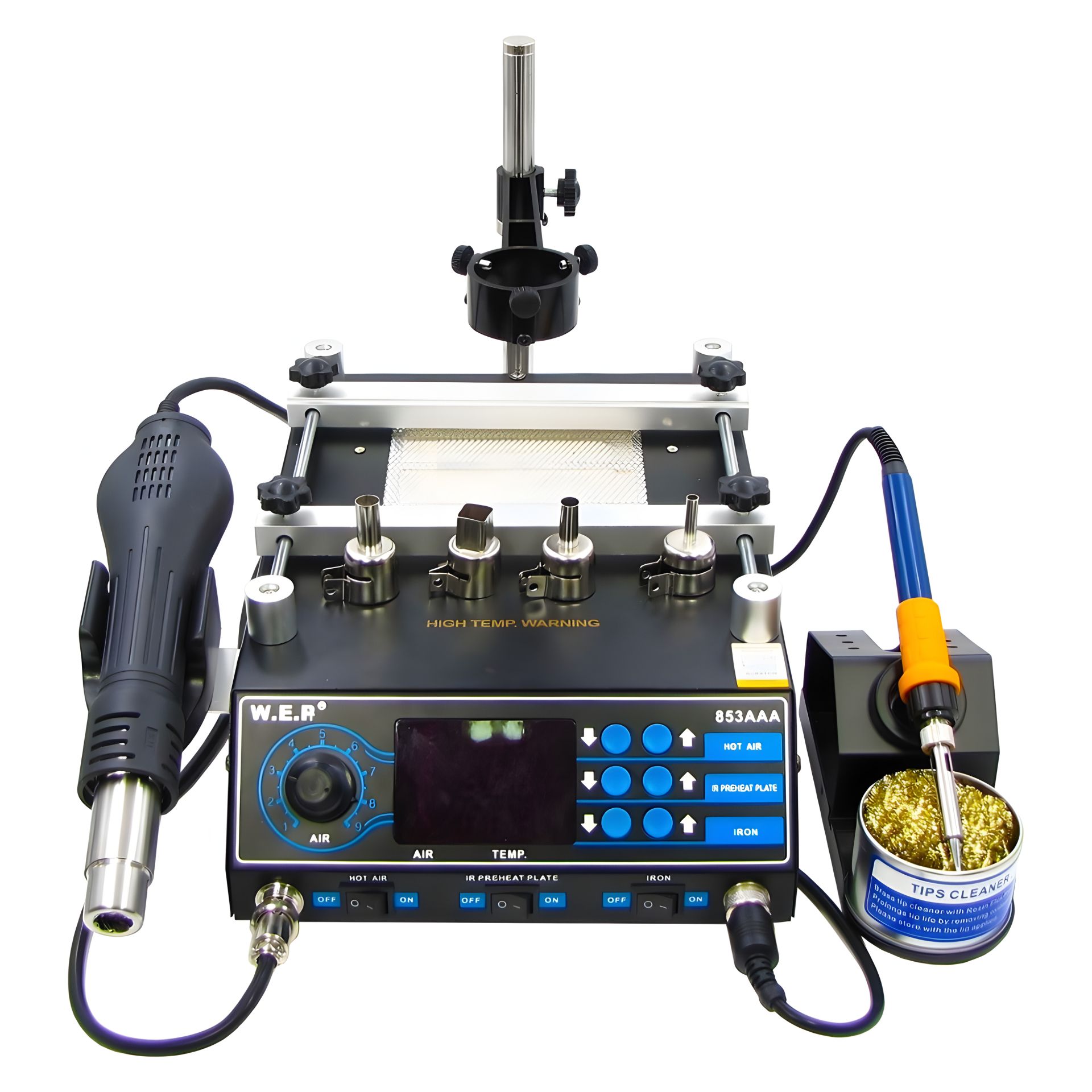 WEP 853AAA Паяльная Станция (ИК подогреватель 120x120 мм, фен с держателем, паяльник)