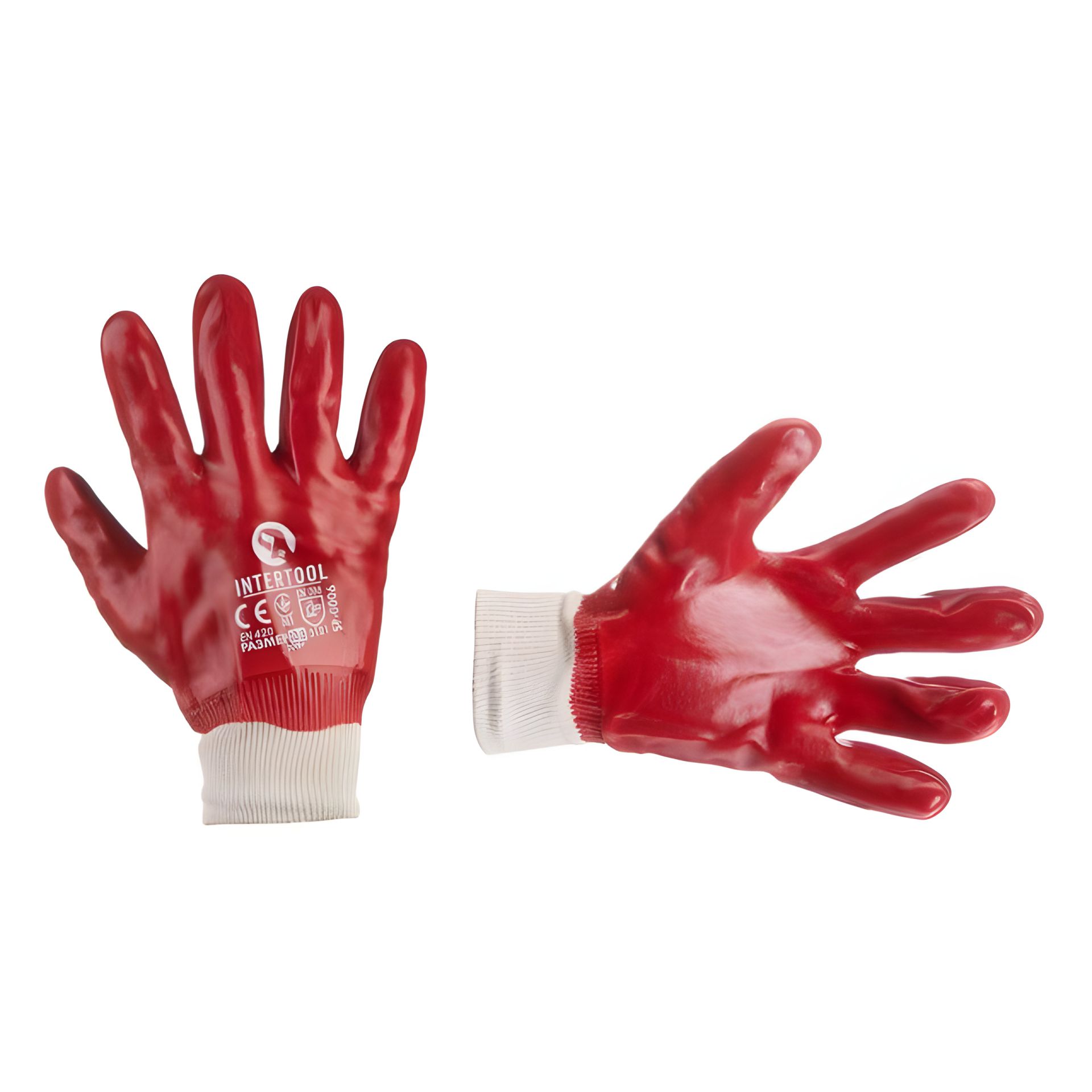 Трикотажные перчатки, х/б, маслостойкие, покрытие PVC, вязанный манжет, красные INTERTOOL SP-0006