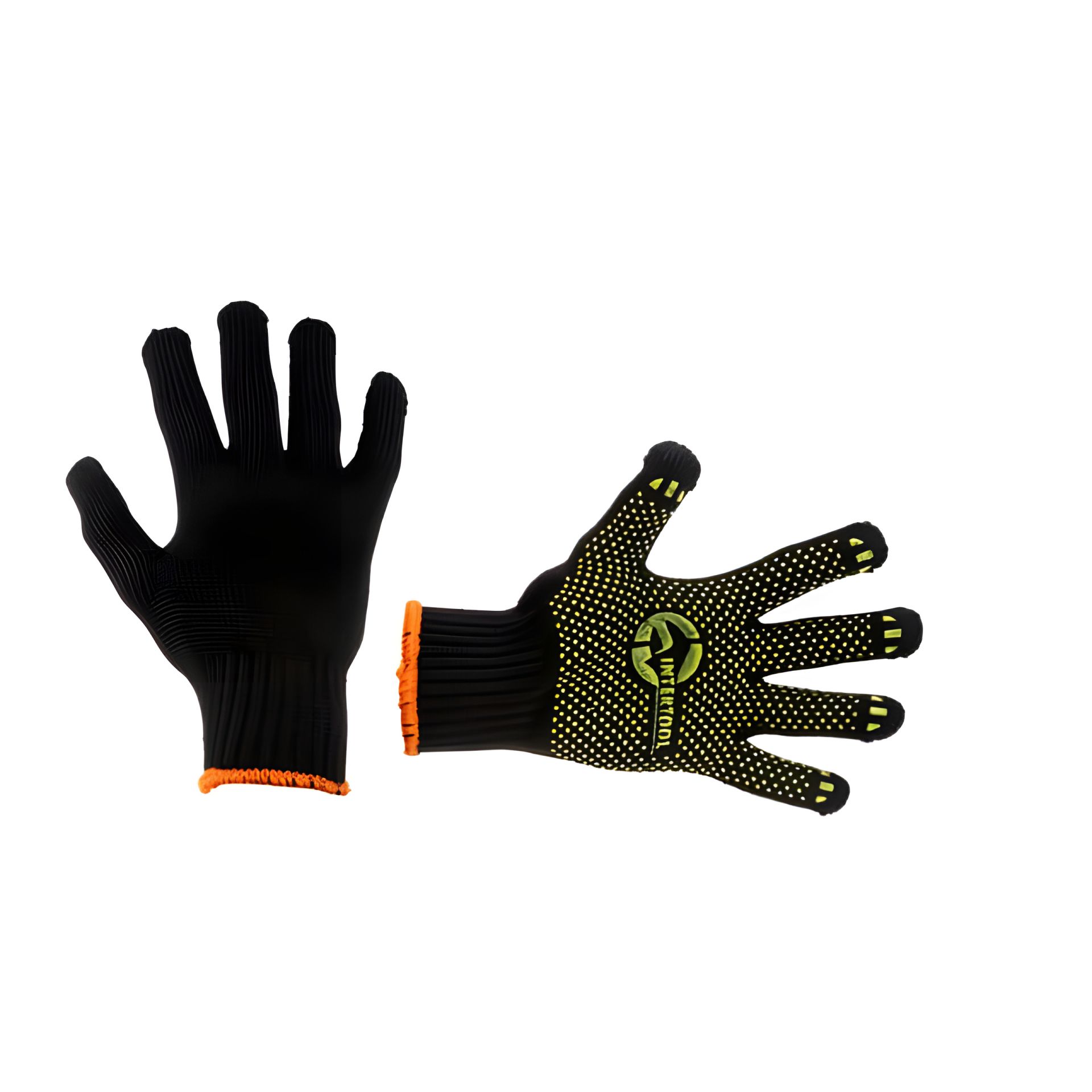 Трикотажная перчатка с желтыми ПВХ точками, 60% хлопок / 40% полиэстер, 10", класс вязки 7, черная, 90 г INTERTOOL SP-0125