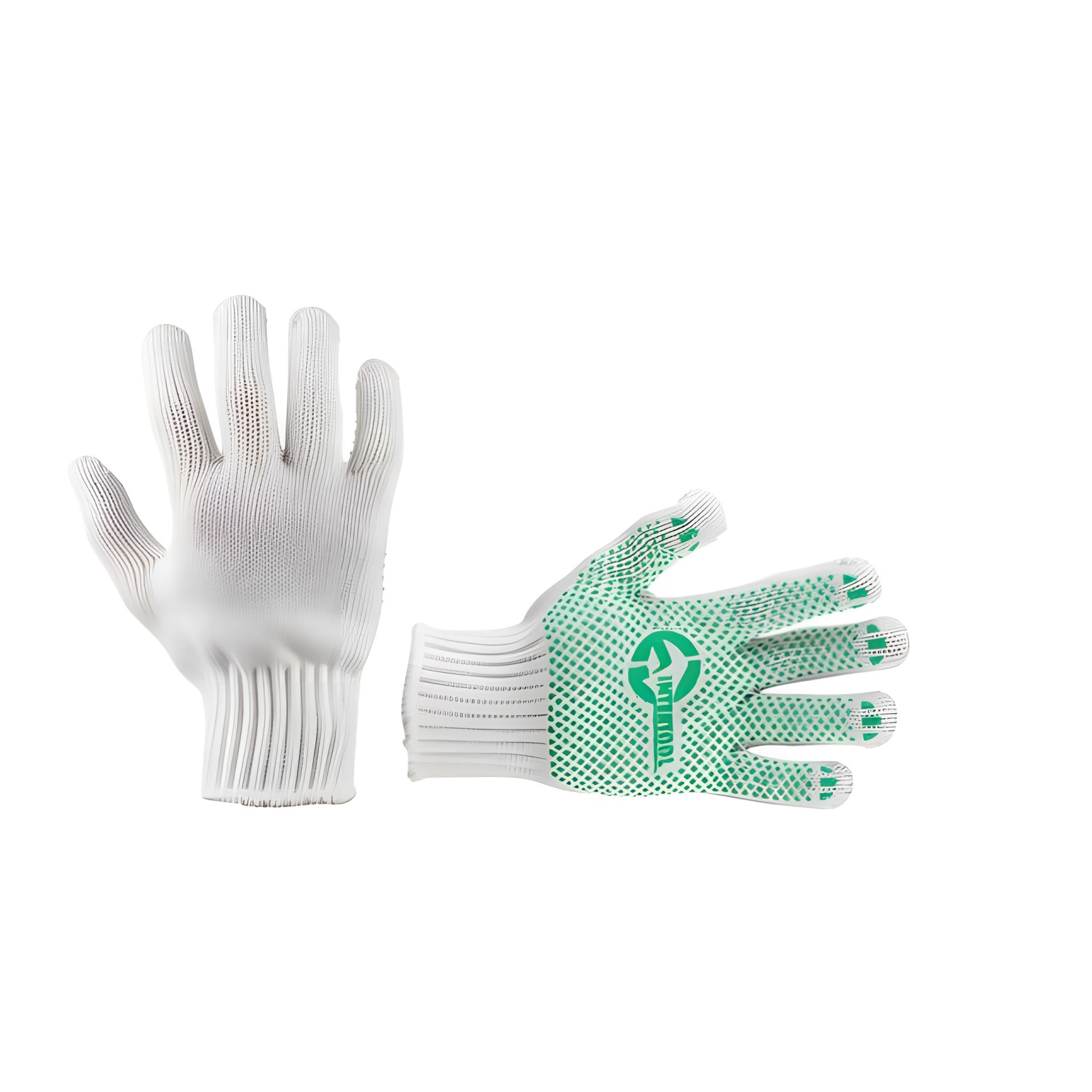 Перчатка трикотажная, зеленые ПВХ точки, 70% хлопок / 30% полиэстер, 10", класс вязки 10, белая, 68 г INTERTOOL SP-0133
