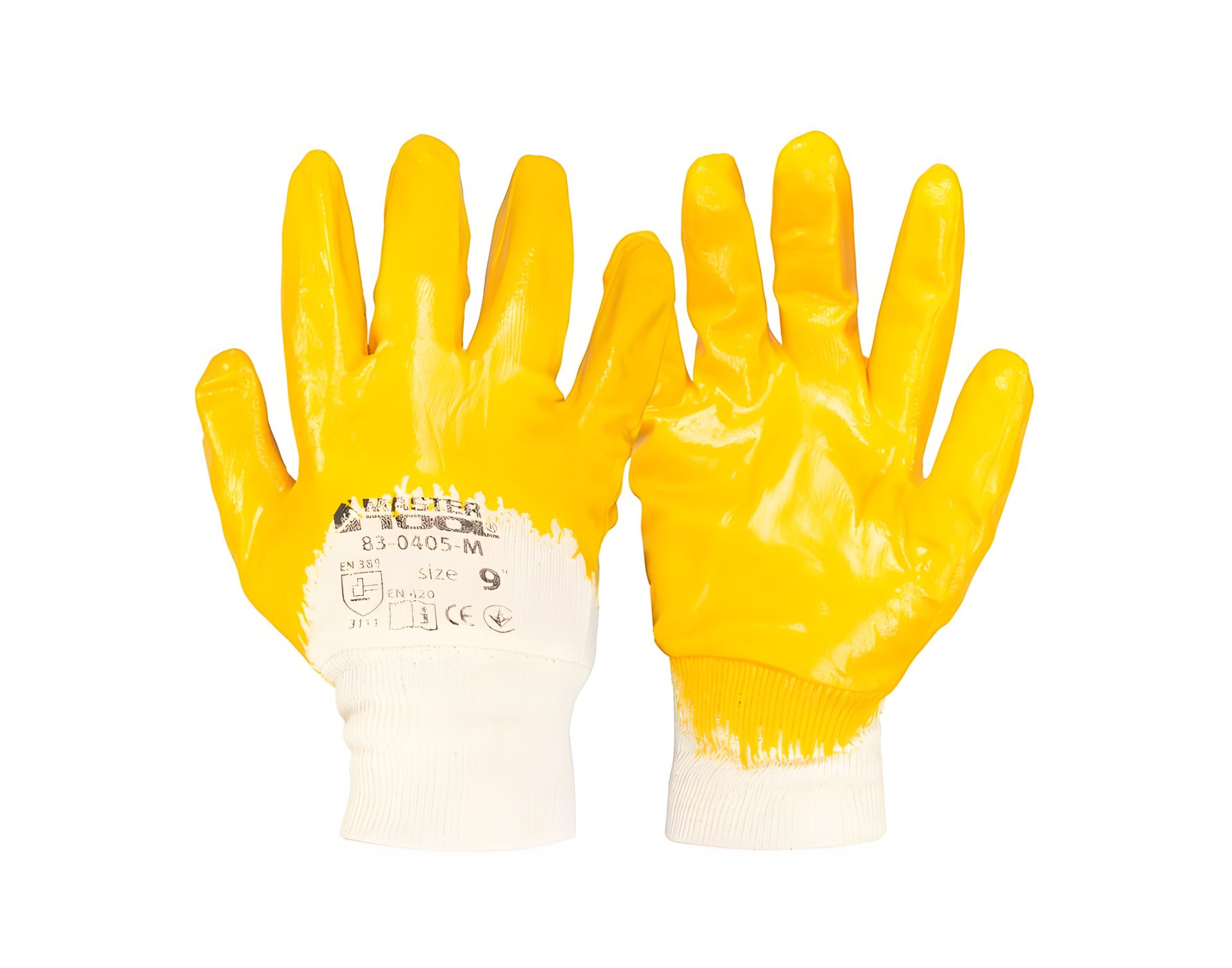 • Нитриловое покрытие: Покрывает ¾ поверхности перчатки, защищая ладони, пальцы и часть тыльной стороны руки от грязи, масел, жиров и других химических веществ.