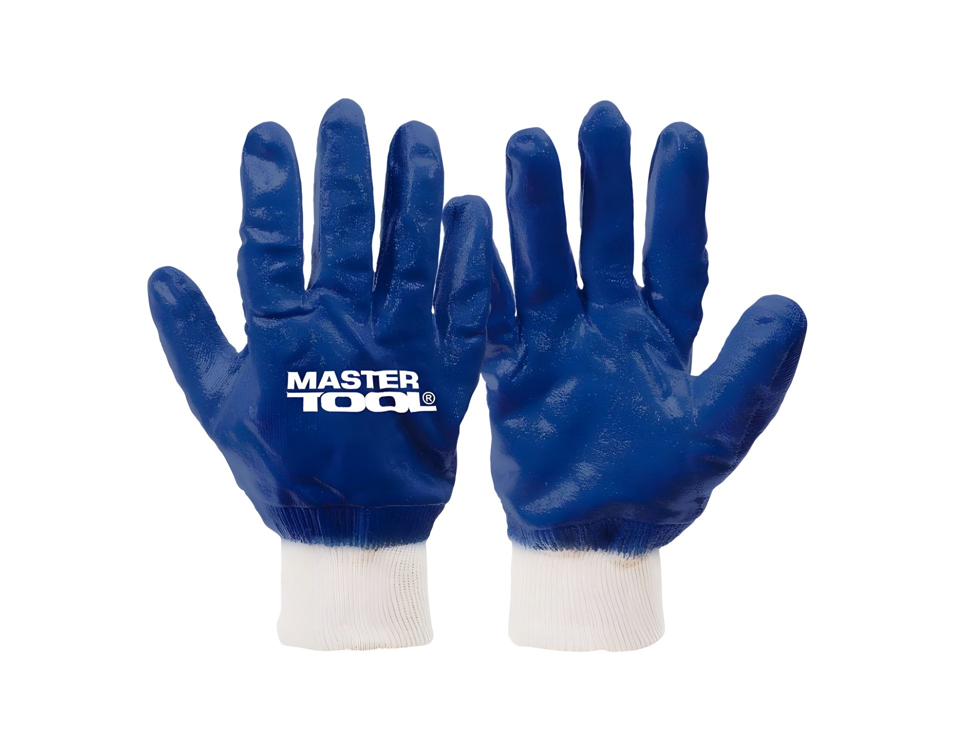 Маслобензостойкие перчатки с полным нитриловым покрытием и вязаным манжетом 10.5", синие MASTERTOOL 83-0406-В
