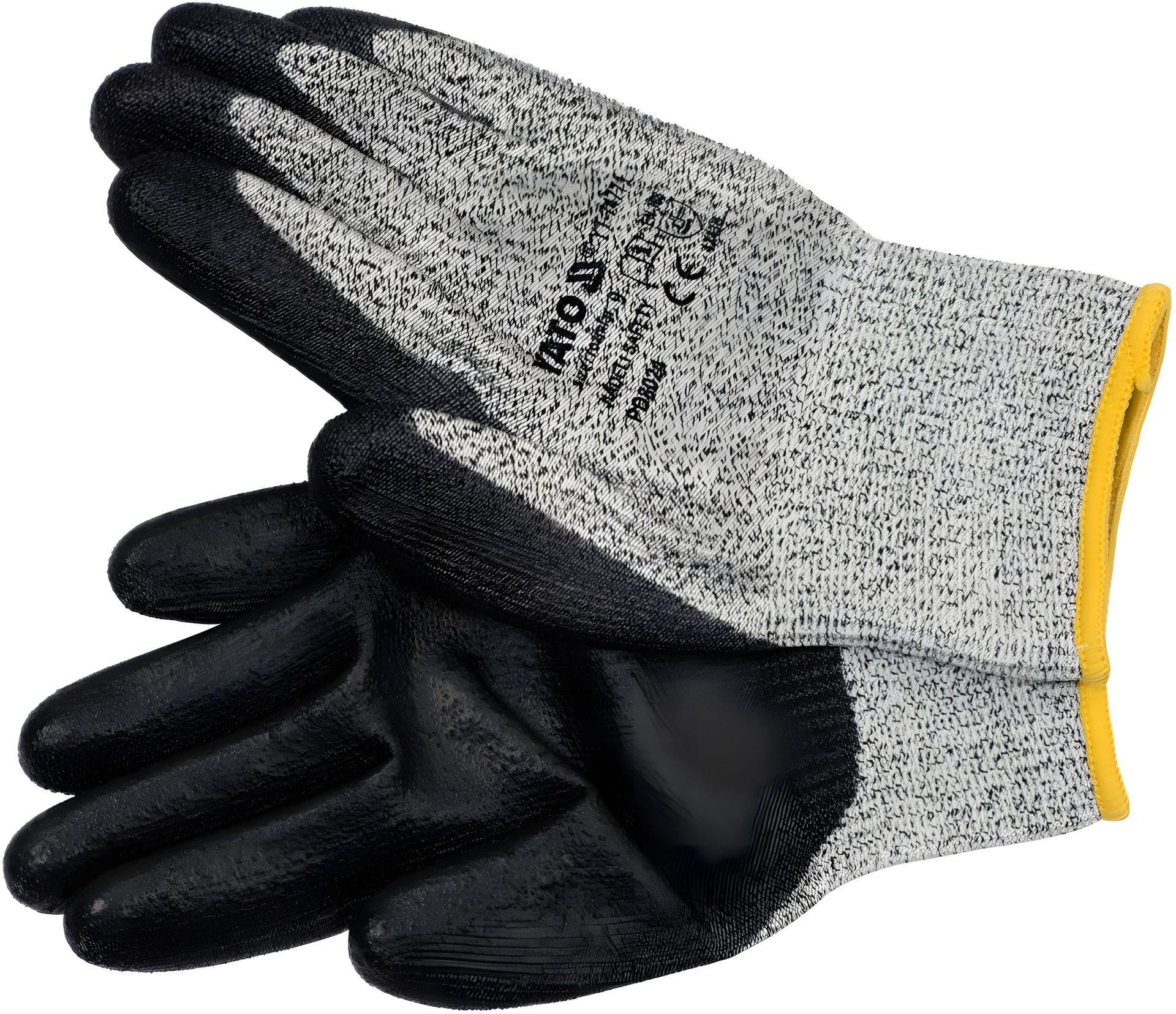 Перчатки полиэтиленовые (HPPE) YATO покрыты черным полиуретаном, размер 9