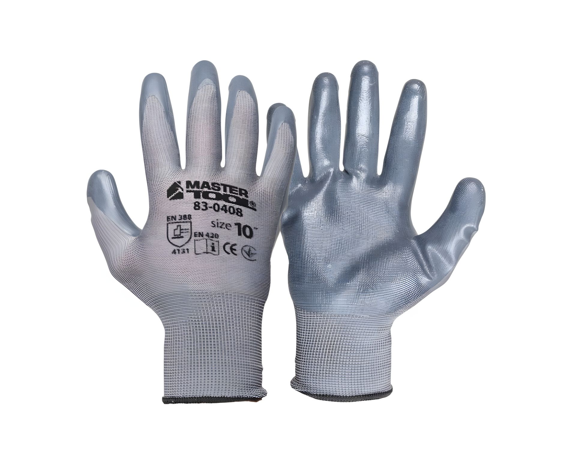 Перчатки трикотажные с нитриловым покрытием ладоней, 10'', 12 пар, серые MASTERTOOL 83-0408doz
