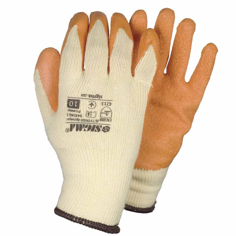 Перчатки трикотажные с частичным латексным покрытием кринкл р10 (оранж, манжет) SIGMA 9445461
