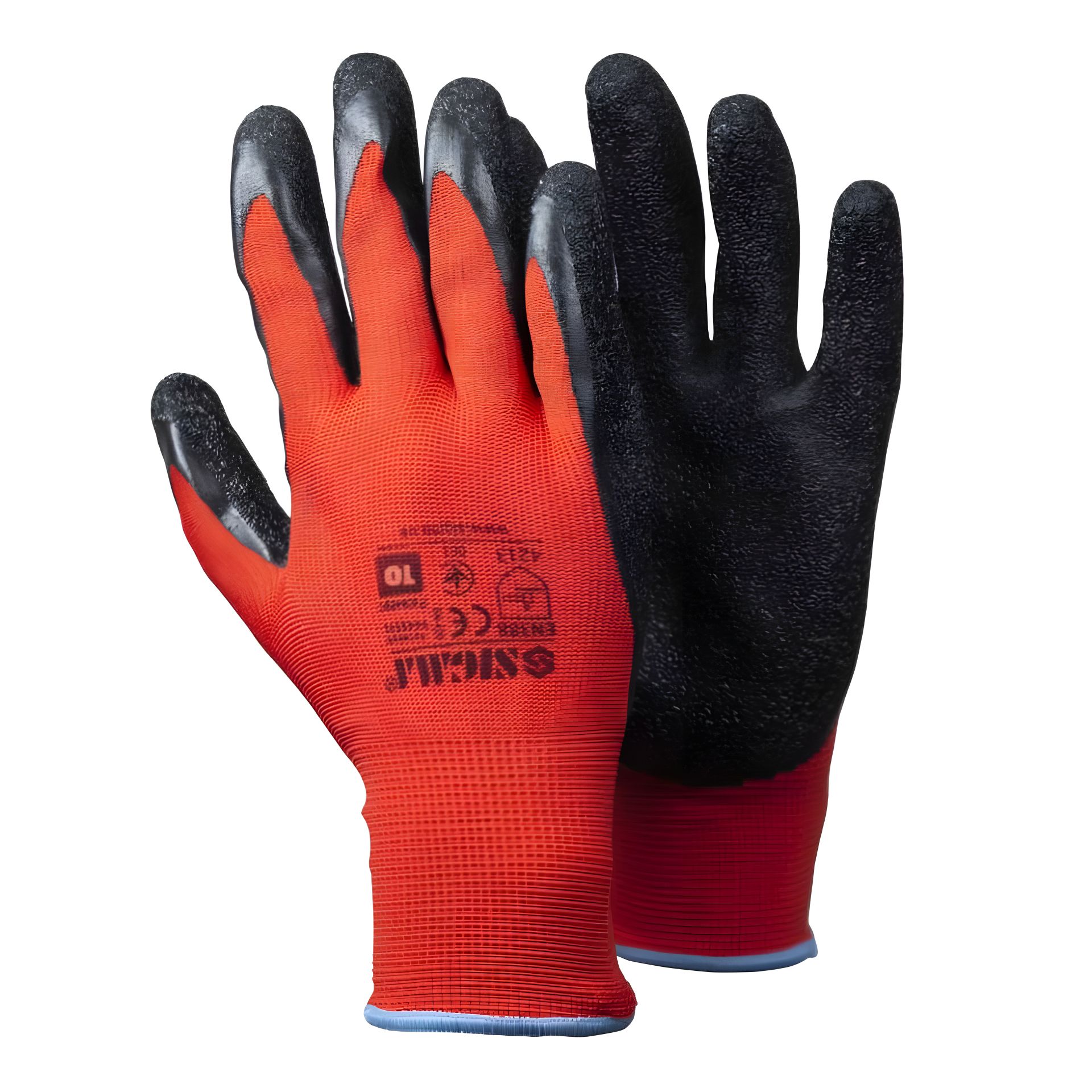 Перчатки трикотажные с частичным латексным вспененным покрытием р10 (черные, манжет) SIGMA (9445581) предназначены для защиты от механических воздействий, от порезов, проколов и имеют хорошее сцепление как с сухими так и с влажными поверхностями.