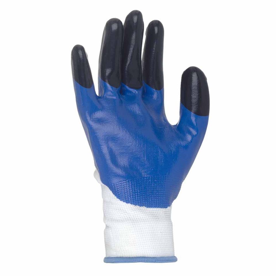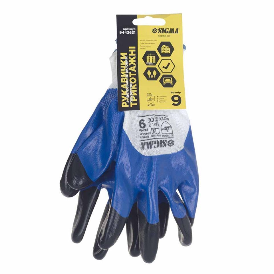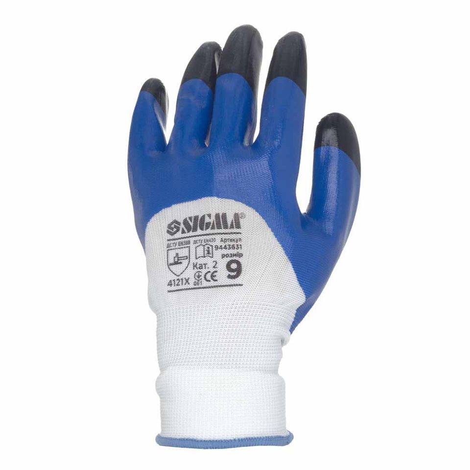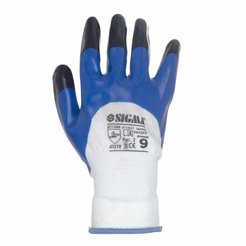 Трикотажные перчатки с частичным нитриловым покрытием и усиленными пальцами р9 (сине-черные, манжет) SIGMA 9443631