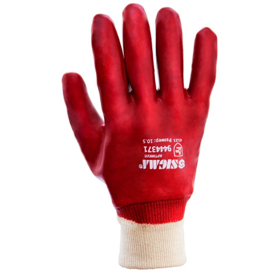 Перчатки трикотажные с ПВХ покрытием (красные манжет) 120 пар SIGMA (9444371) предназначены для защиты рук от воздействий масел, жиров, нефтепродуктов, а также механических воздействий.